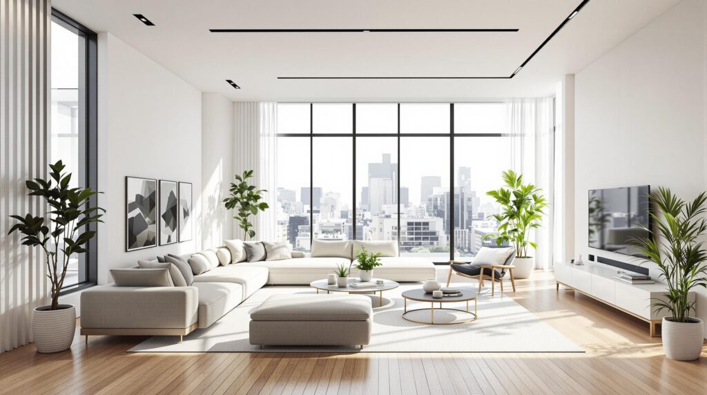 - 大型窓や採光への配慮:自然光を最大限活用した明るい室内環境